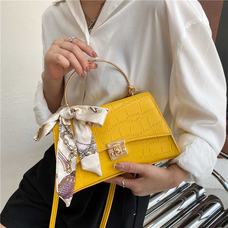 Product details of IELGY retro lock stone pattern silk scarf Korean crossbody female bag