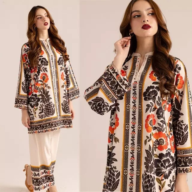Stylish Printed V-Neck Shirt and Plain Trouser Set