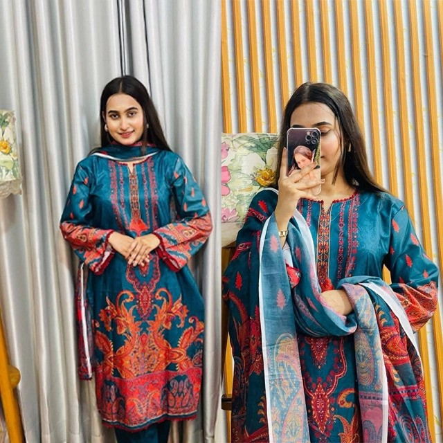 This Women’s Kurti Set brings together timeless craftsmanship and modern style. The kamiz, crafted from original Dubai silk, offers an exquisite texture and full lace embellishments that radiate sophistication. The georgette dupatta, with its airy feel and intricate lacework, adds a delicate touch to complete the look. Meanwhile, the pure cotton salwar combines style with practicality, ensuring you look and feel perfect no matter the occasion. Available in M, L, and XL, this kurti set is designed to celebrate every woman’s individuality and charm.